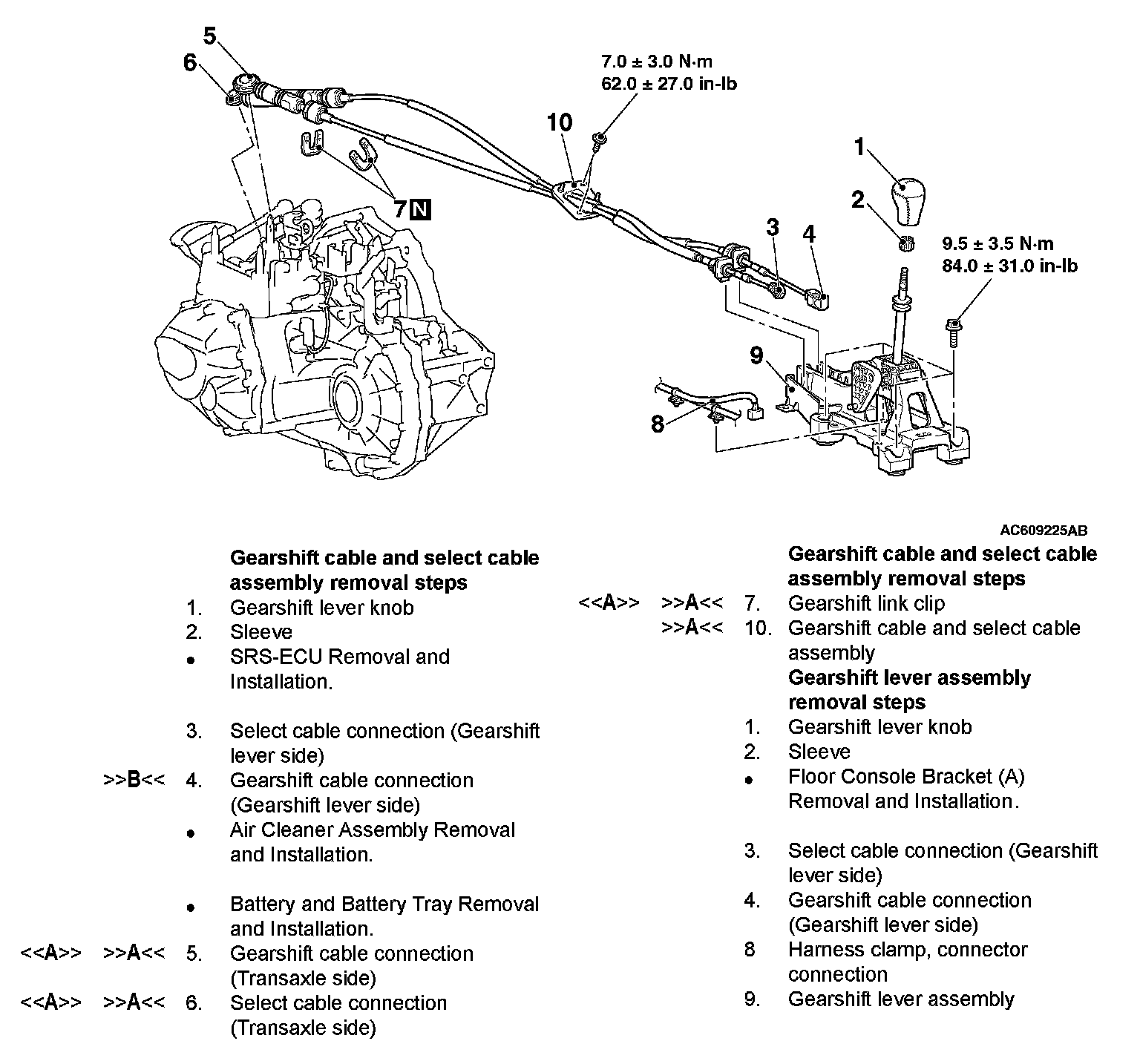 Gearshift Cable And Select Cable Assembly Removal Steps 1-10 / Gearshift Lever Assembly Removal Steps 1-9: