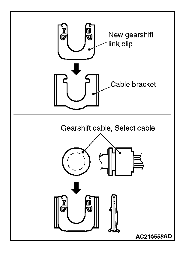 Insert thoroughly the gearshift link clip, gearshift cable and select cable until they click in place.
