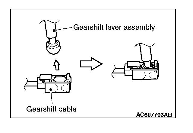 Insert the tip of the gearshift cable to the gearshift lever assembly thoroughly as shown until it clicks in place.