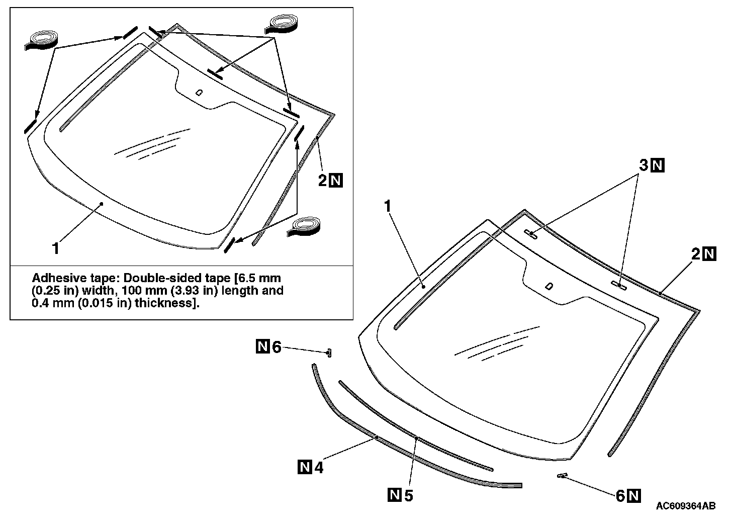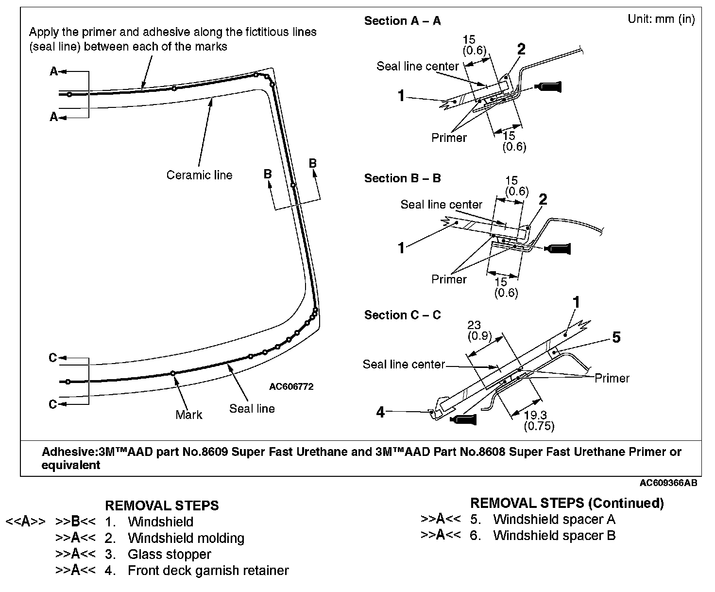 8. When reusing the windshield, remove the adhesive still adhering to the windshield, and clean with 3M(TM) AAD Part number 8906 or equivalent.
