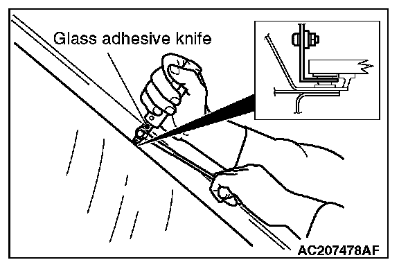 CAUTION: Inserting the glass adhesive knife too deeply into windshield adhesive may damage windshield.