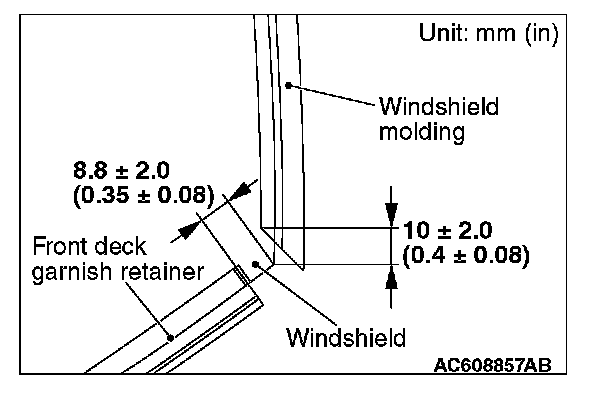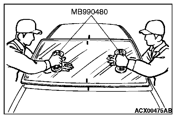 1. When replacing the windshield, temporarily set the windshield against the body, and place a mating mark on the windshield and body.