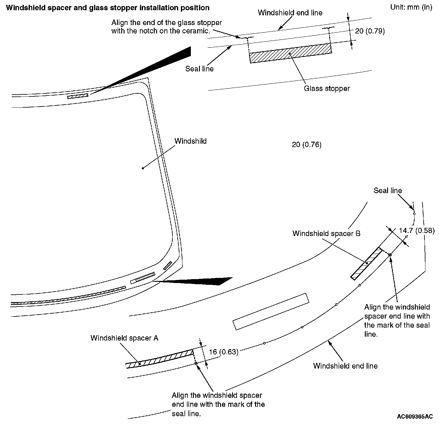 Windshield Spacer And Glass Stopper Installation Position: