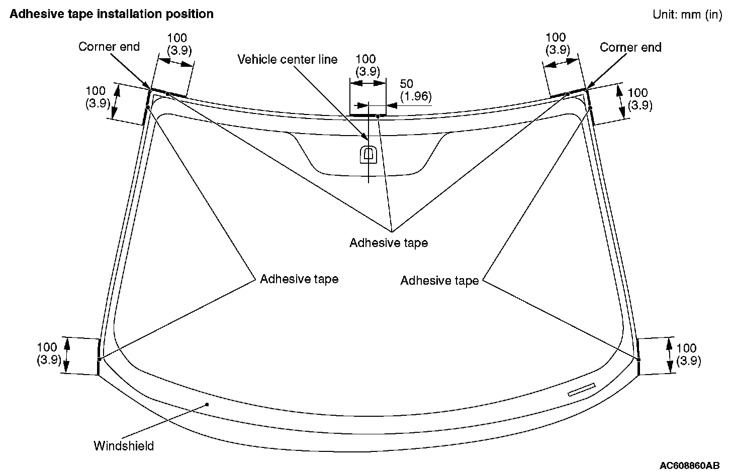 3. Install the adhesive tape to the windshield.