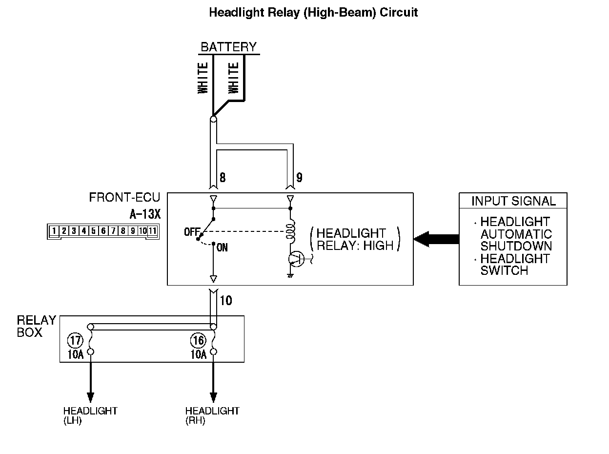 Headlight Relay (High-Beam) Circuit: