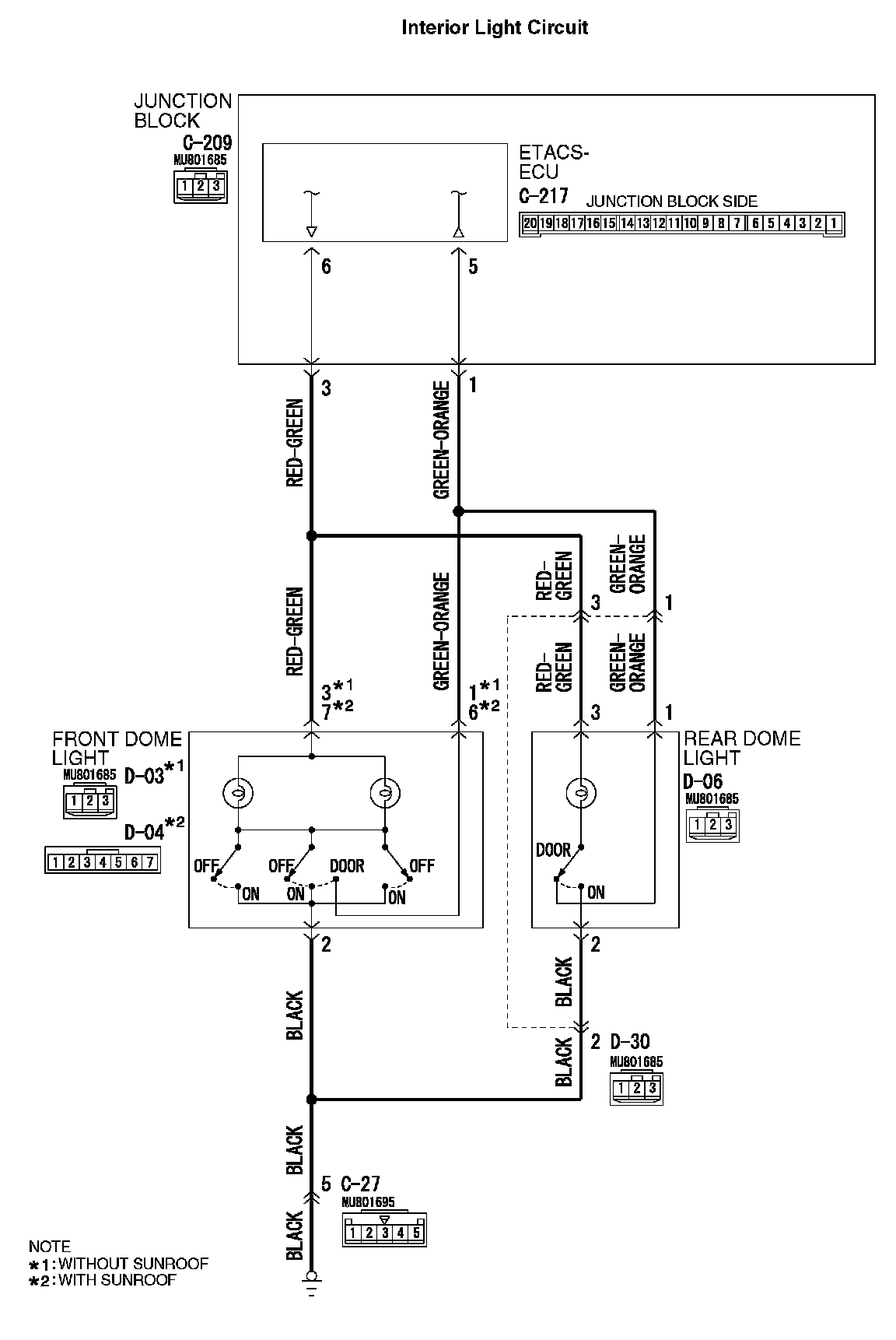 Q: Is front dome light connector D-03 [without sunroof], D-04 [with sunroof] and ETACS-ECU connector C-217 in good condition?