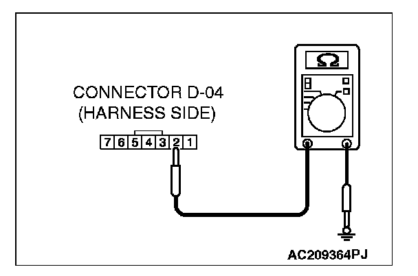 STEP 11. Check the ground circuit to the rear dome light. Measure the resistance at rear dome light connector D-06.