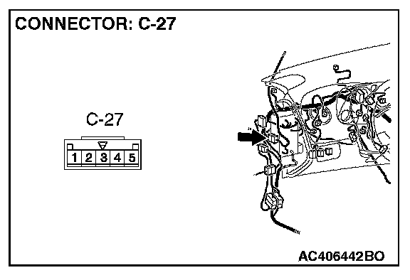 NOTE: Also check intermediate connector C-27 for loose, corroded, or damaged terminals, or terminals pushed back in the connector. If intermediate connector C-27 is damaged, repair or replace the damaged component(s) as described.