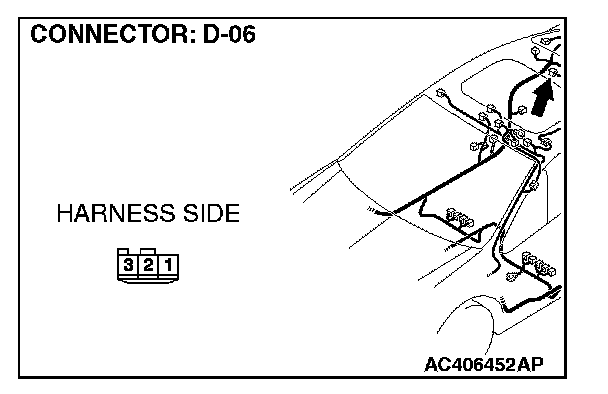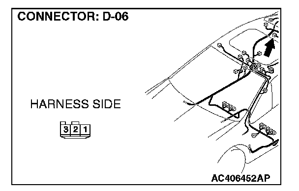 1. Disconnect rear dome light connector D-06 and measure the resistance available at the wiring harness side of the connector.