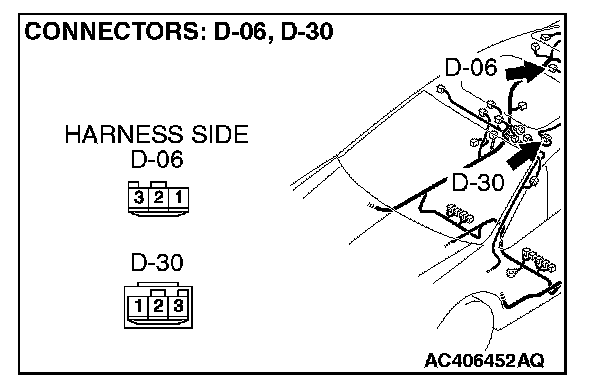 NOTE: Also check intermediate connector D-30 for loose, corroded, or damaged terminals, or terminals pushed back in the connector. If intermediate connector D-30 is damaged, repair or replace the damaged component(s) as described.