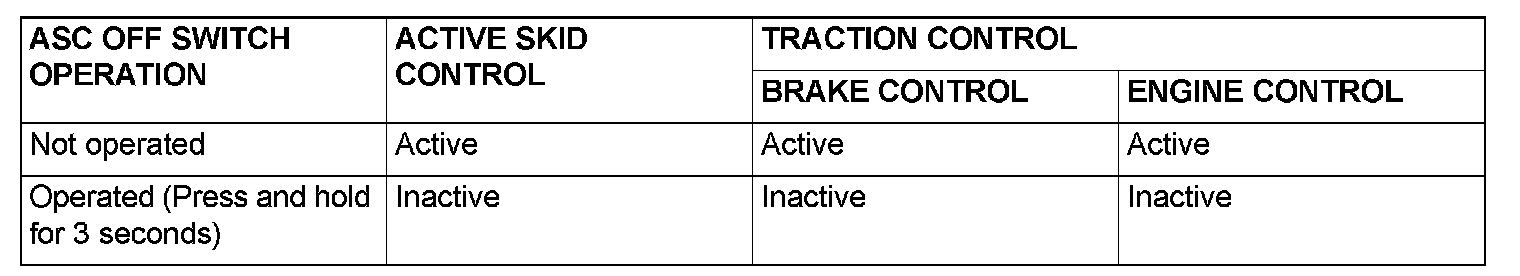 NOTE: The ASC returns to the active state automatically when the ignition switch is turned to the ON position.
