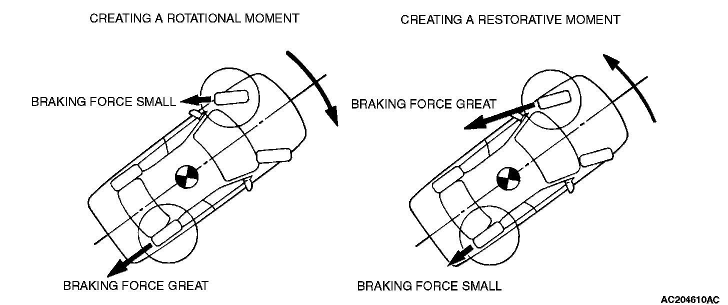 The ASC manages the vehicle attitude by creating a yaw moment from altering the balance between the cornering force and each wheel's braking mechanism.