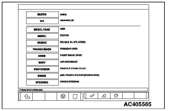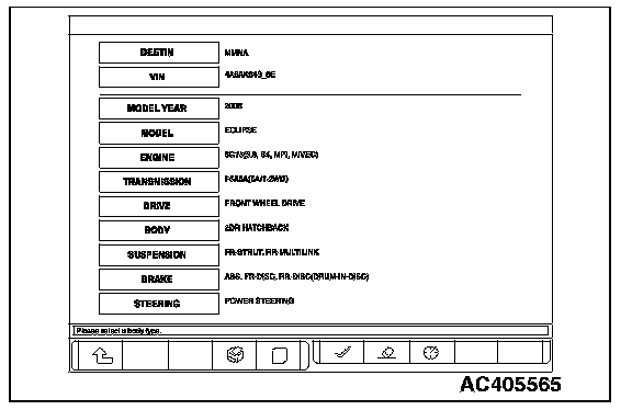 HOW TO PERFORM VEHICLE IDENTIFICATION NUMBER (VIN) WRITINGThe Vehicle Identification Number (VIN) is stored in the ECM or PCM by the vehicle manufacture. If the VIN to be stored in the ECM or PCM is eliminated fraudulently, the Malfunction Indicator Lamp (SERVICE ENGINE SOON or Check Engine Lamp) illuminates and Diagnostic Trouble Code (DTC) No. P0630 (VIN malfunction) is shown. When the ECM or PCM is replaced, and entry of the VIN necessary due to DTC No. P0630 (VIN malfunction). Enter the VIN in accordance with the procedure as follows: