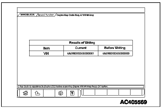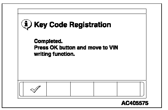 10. When the VIN writing completion menu is displayed, press the OK button.