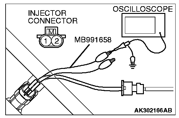 1. Disconnect the injector connector, and connect the test harness special tool (MB991658) between the separated connector. (All terminals should be connected.)