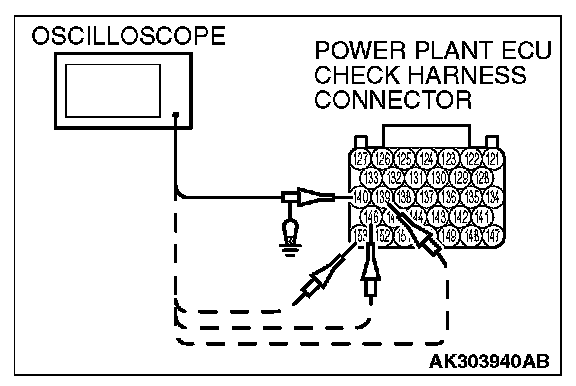 2. Connect the oscilloscope probe to each check harness connector terminal to analyze each cylinder: