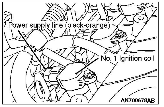 3. Set a timing light to the power supply line (terminal No. 1) of the ignition coil No. 1.