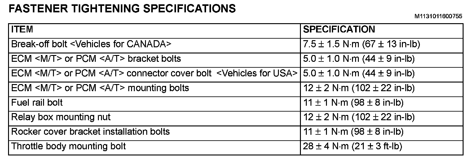 Fastener Tightening Specifications: