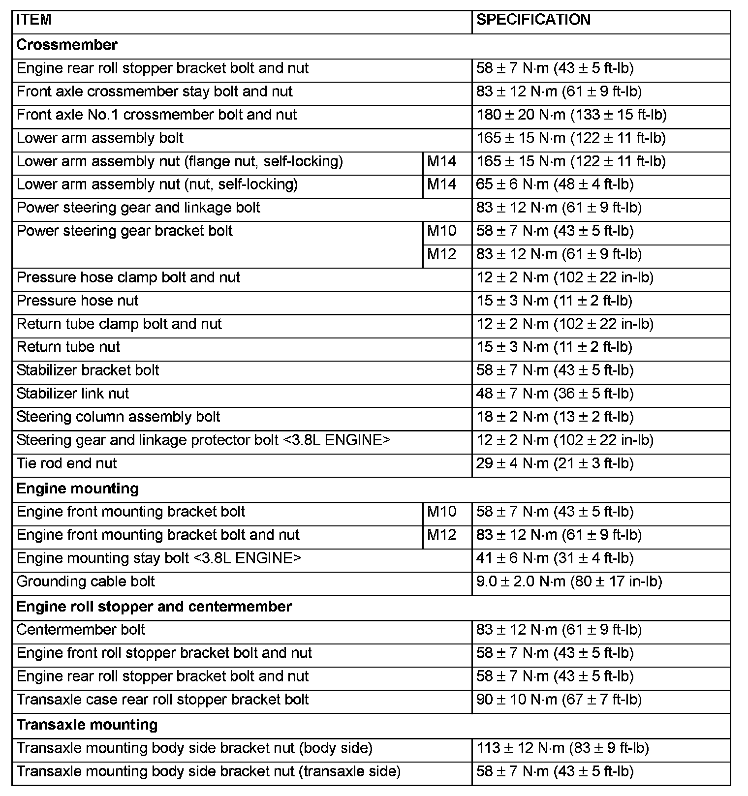 FASTENER TIGHTENING SPECIFICATIONS