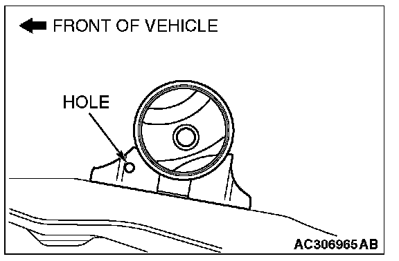 Install the engine front roll stopper bracket so that its hole points towards the front side of the vehicle.