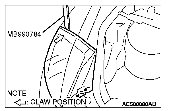 Before removing the rear combination light, disengage the claw shown in the illustration using special tool MB990784.