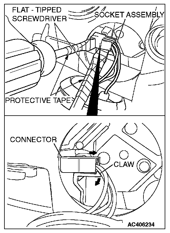 Remove the socket assembly connector using a flat-tipped screwdriver as shown.