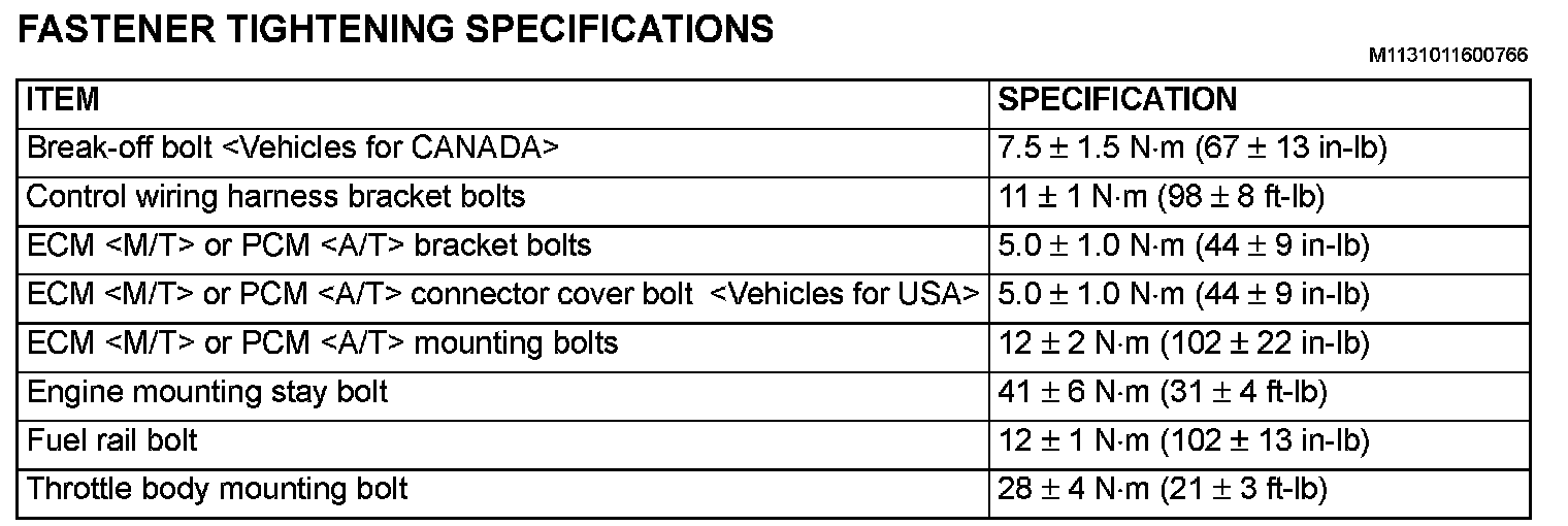 Fastener Tightening Specifications: