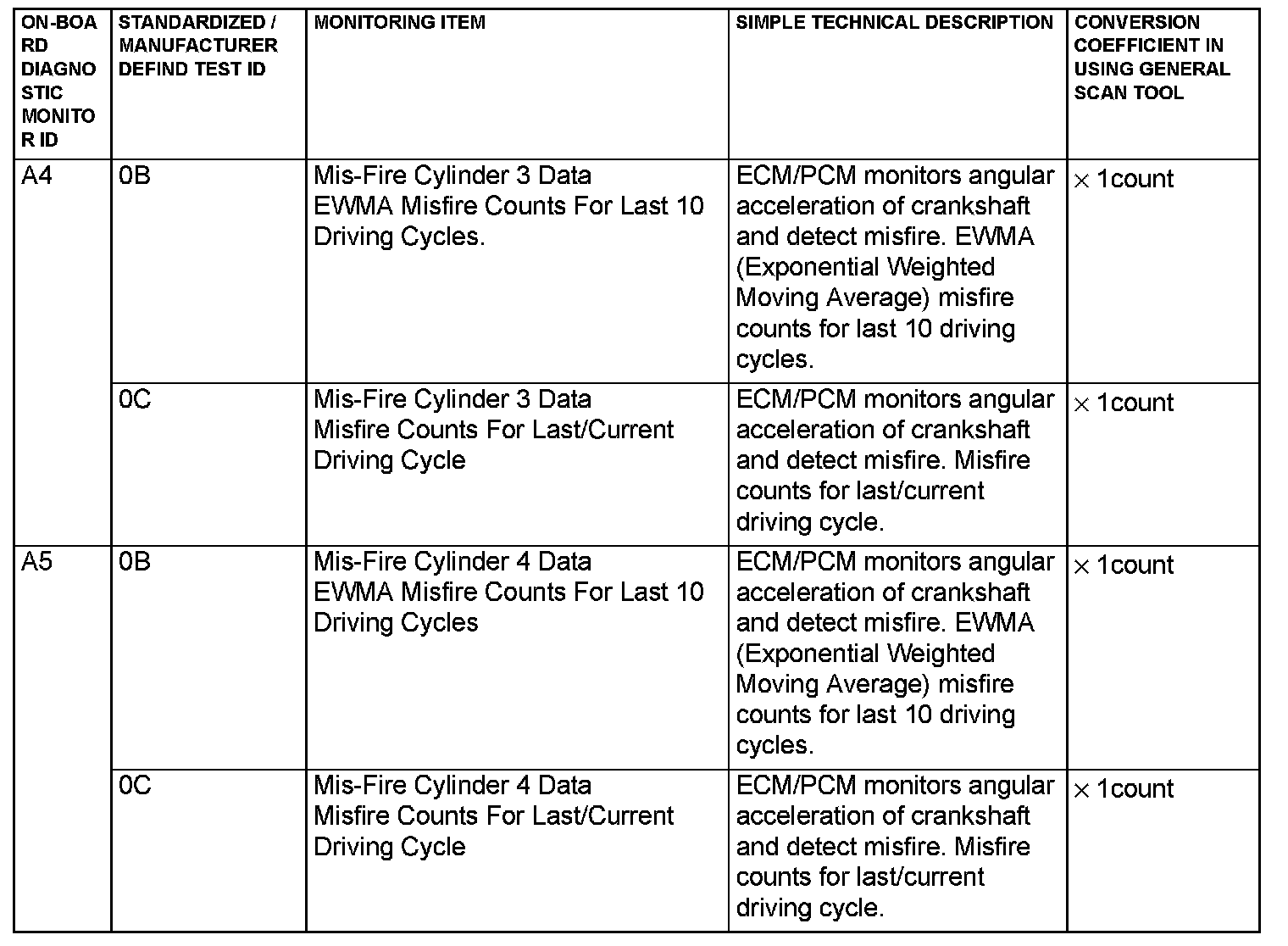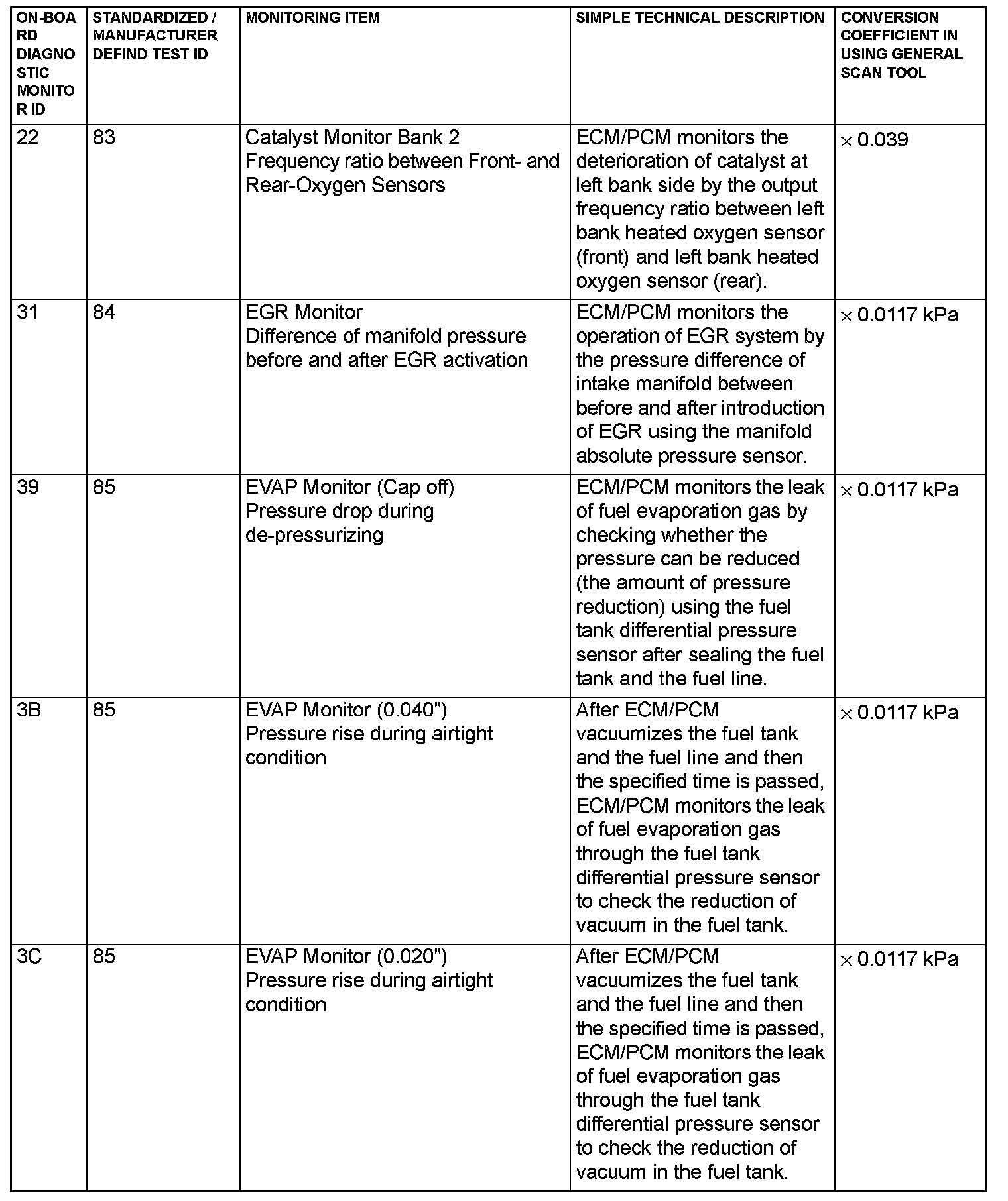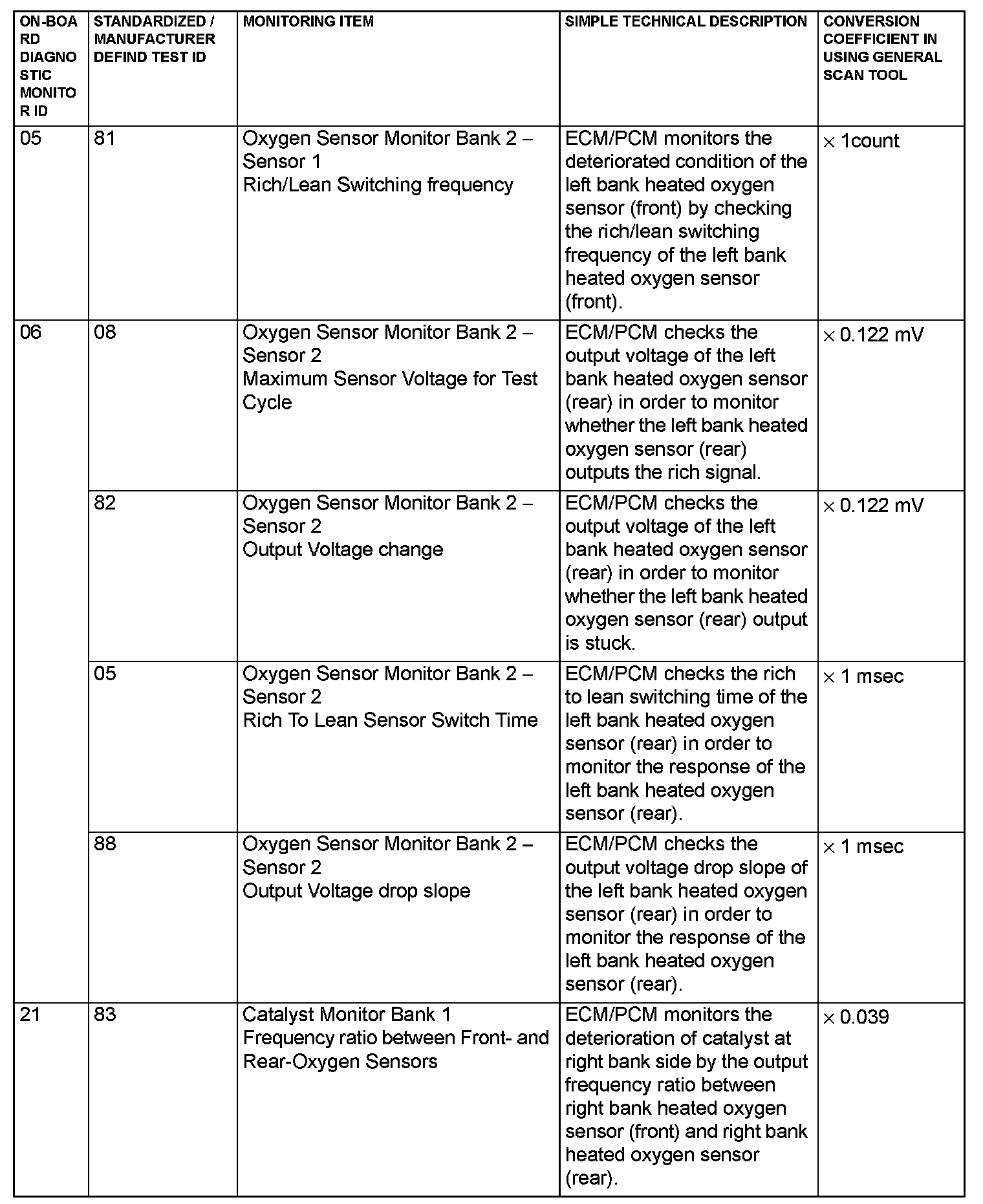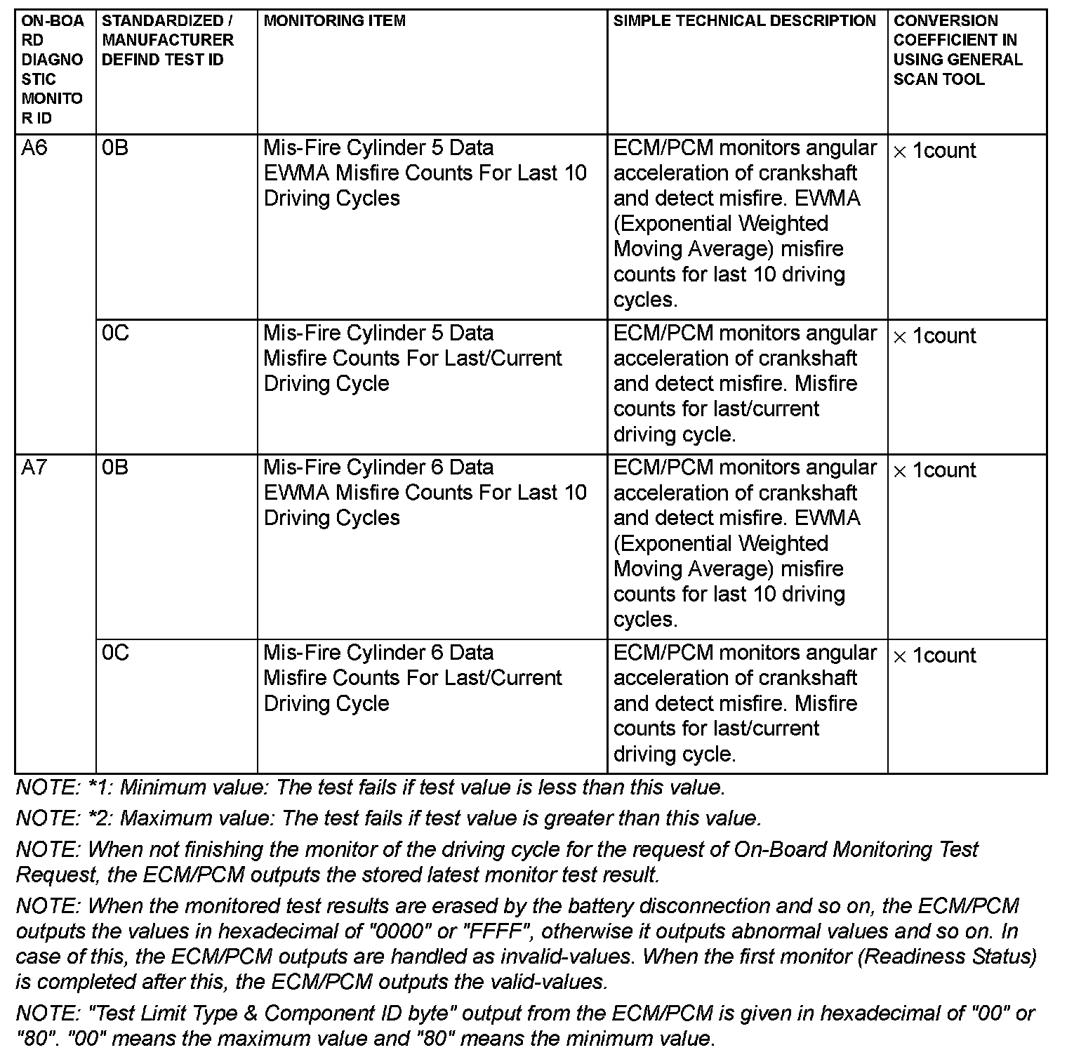 Mode 6 Reference Table (Part 1):