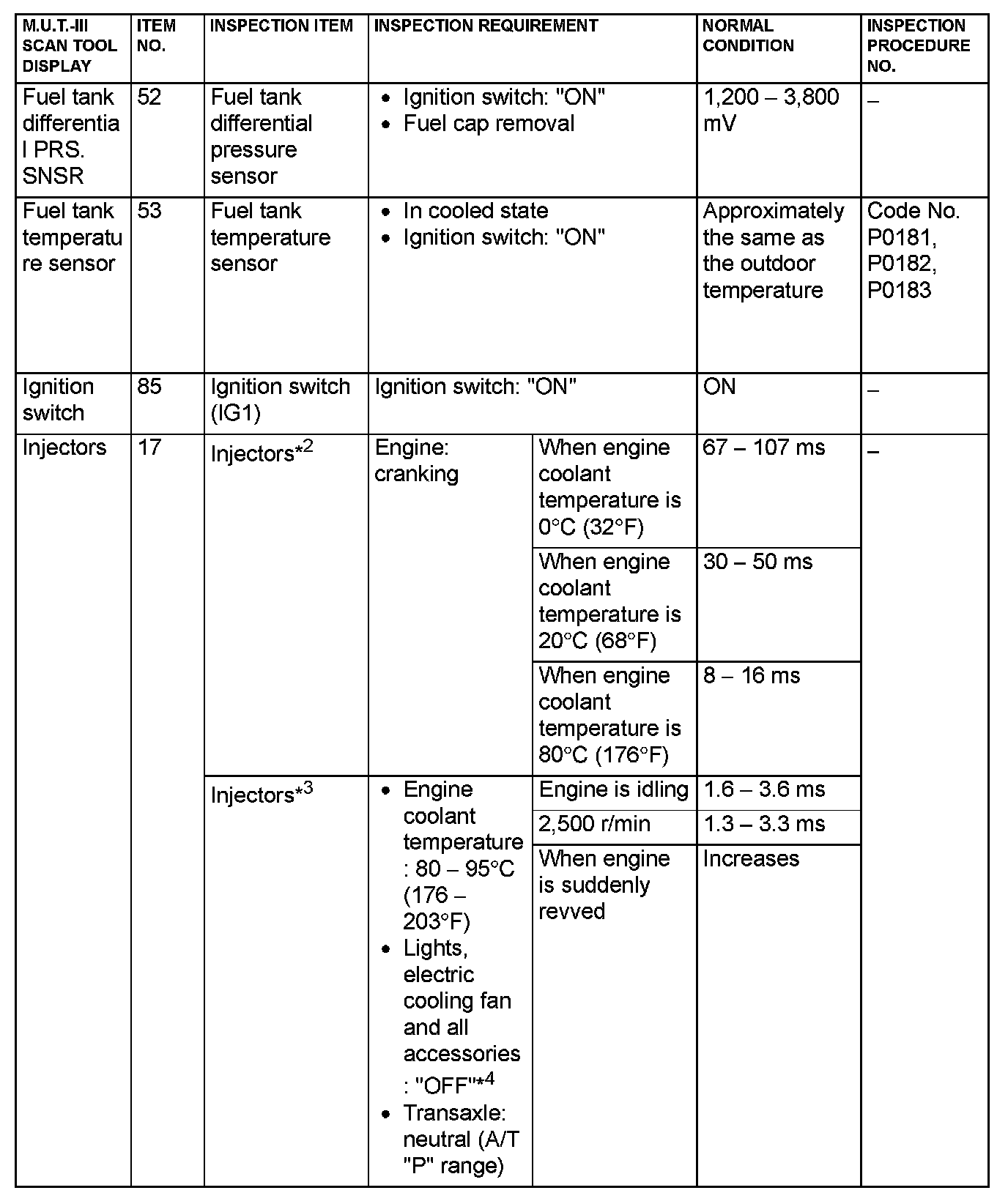 *3: In a new vehicle [driven approximately 500 km (311 mile) or less], the injector drive time is sometimes 10 % longer than the standard time.