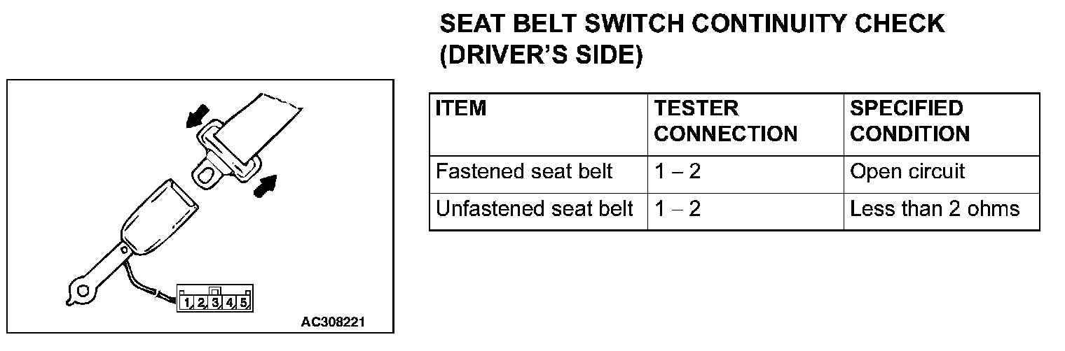 SEAT BELT SWITCH CONTINUITY CHECK (DRIVER'S SIDE)