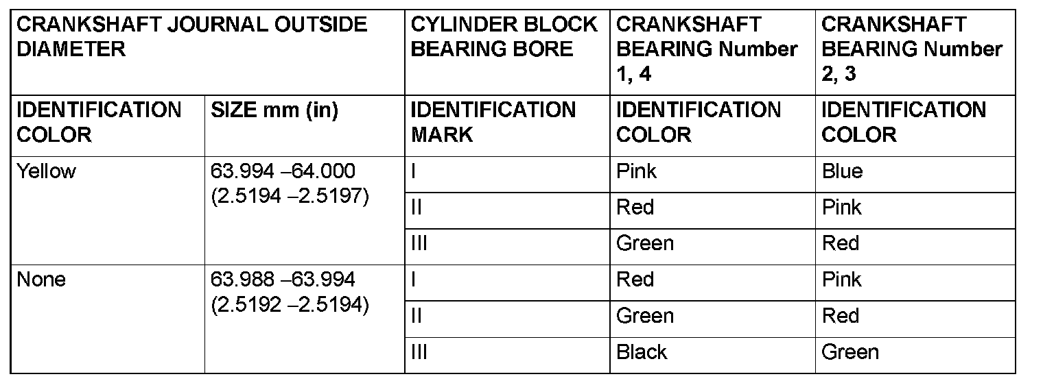 Crankshaft Main Bearing Size Codes