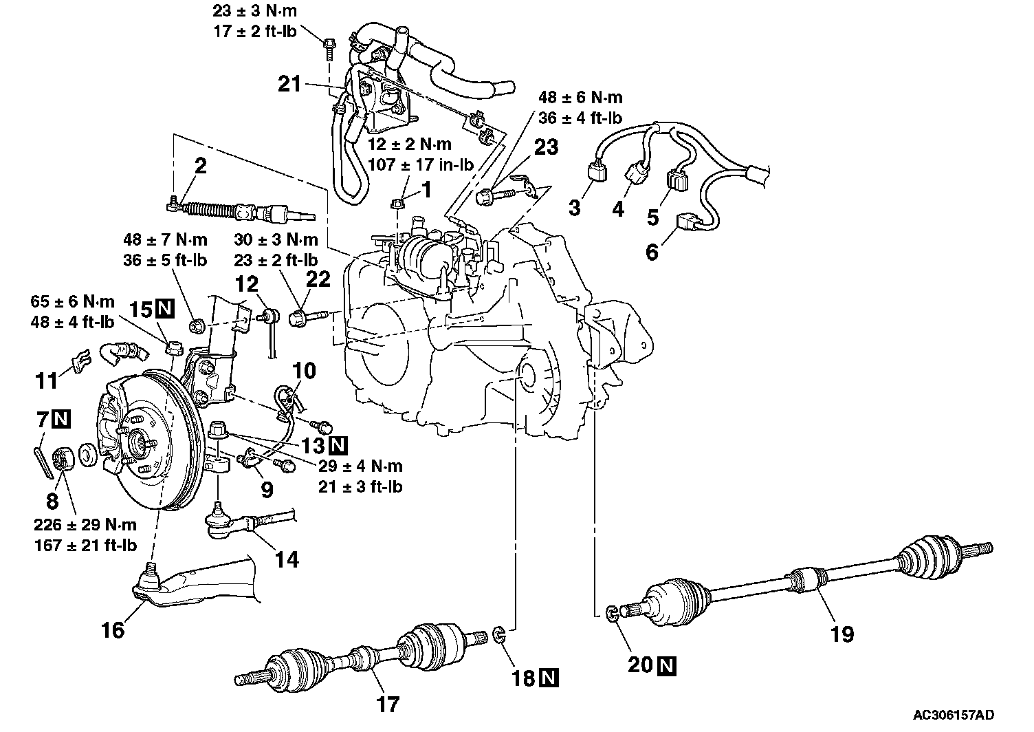 Tightening torque: 226 ± 29 Nm (167 ± 21 ft-lb)