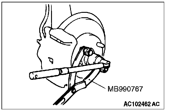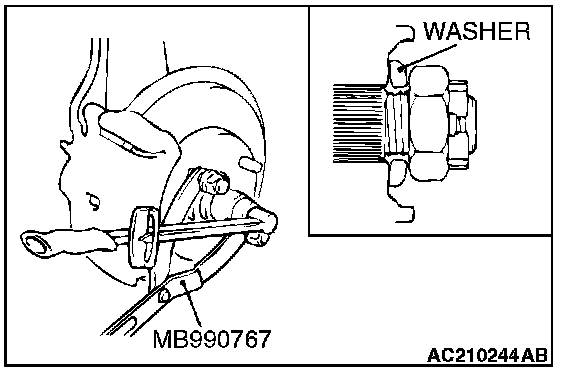 Use special tool MB990767 to fix the hub and remove the drive shaft nut.