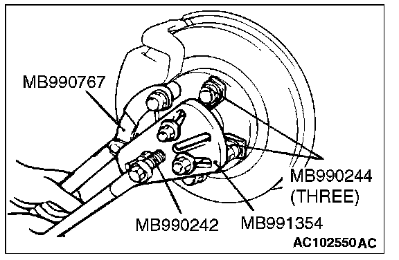 1. Use special tools MB990242, MB990244, MB991354 and MB990767 to push out the drive shaft or the drive shaft and inner shaft assembly from the hub.