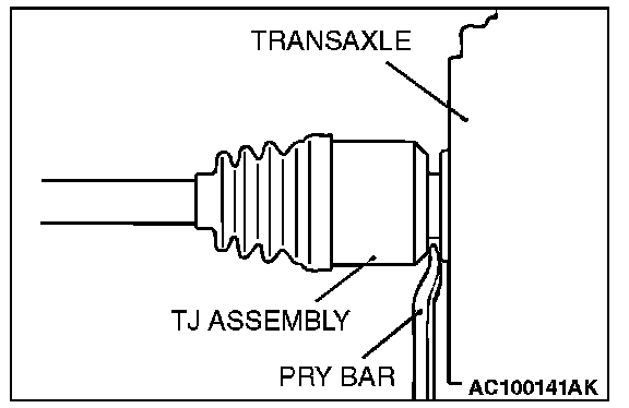 3. Remove the drive shaft from the transaxle by the following procedure. Insert a pry bar between the transaxle case and the drive shaft, and then pry the drive shaft from the transaxle.