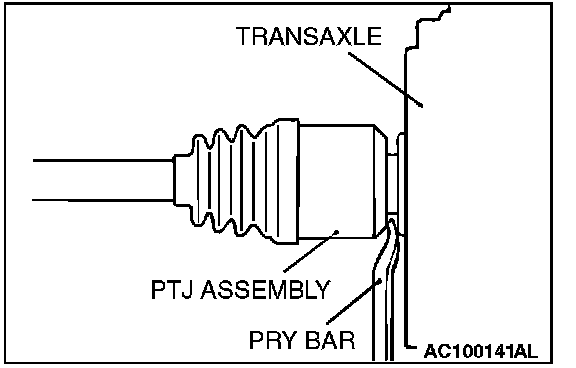 ^ Do not pull on the drive shaft; doing so will damage the PTJ; be sure to use the pry bar.