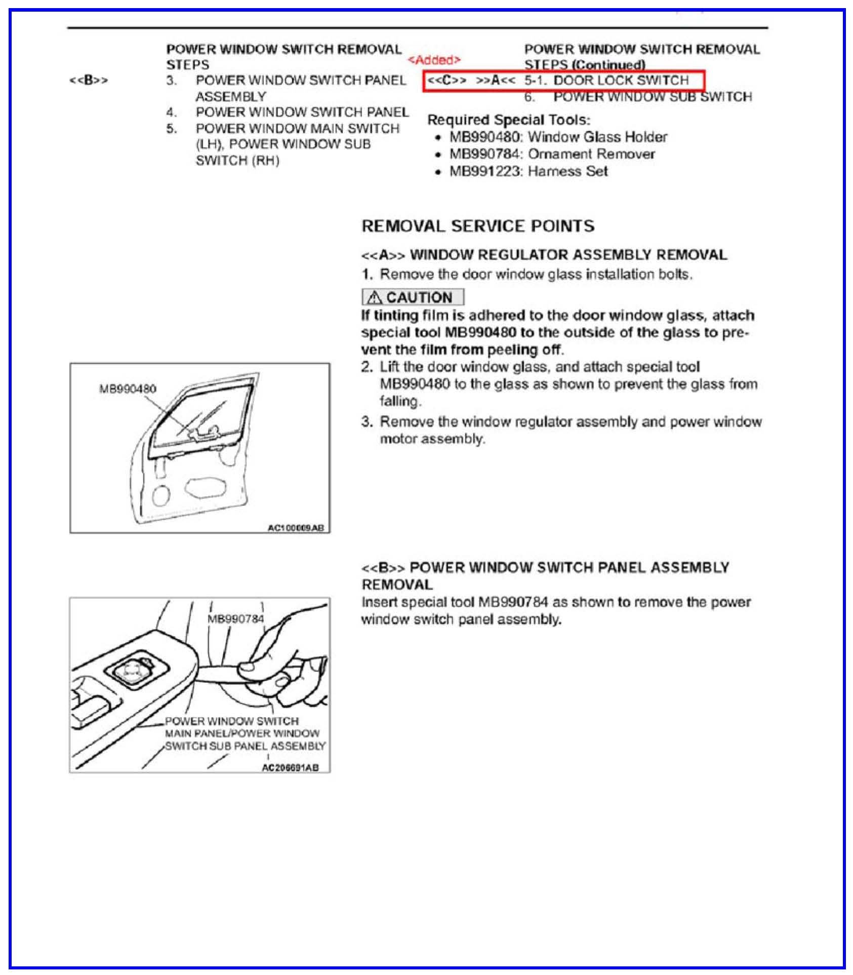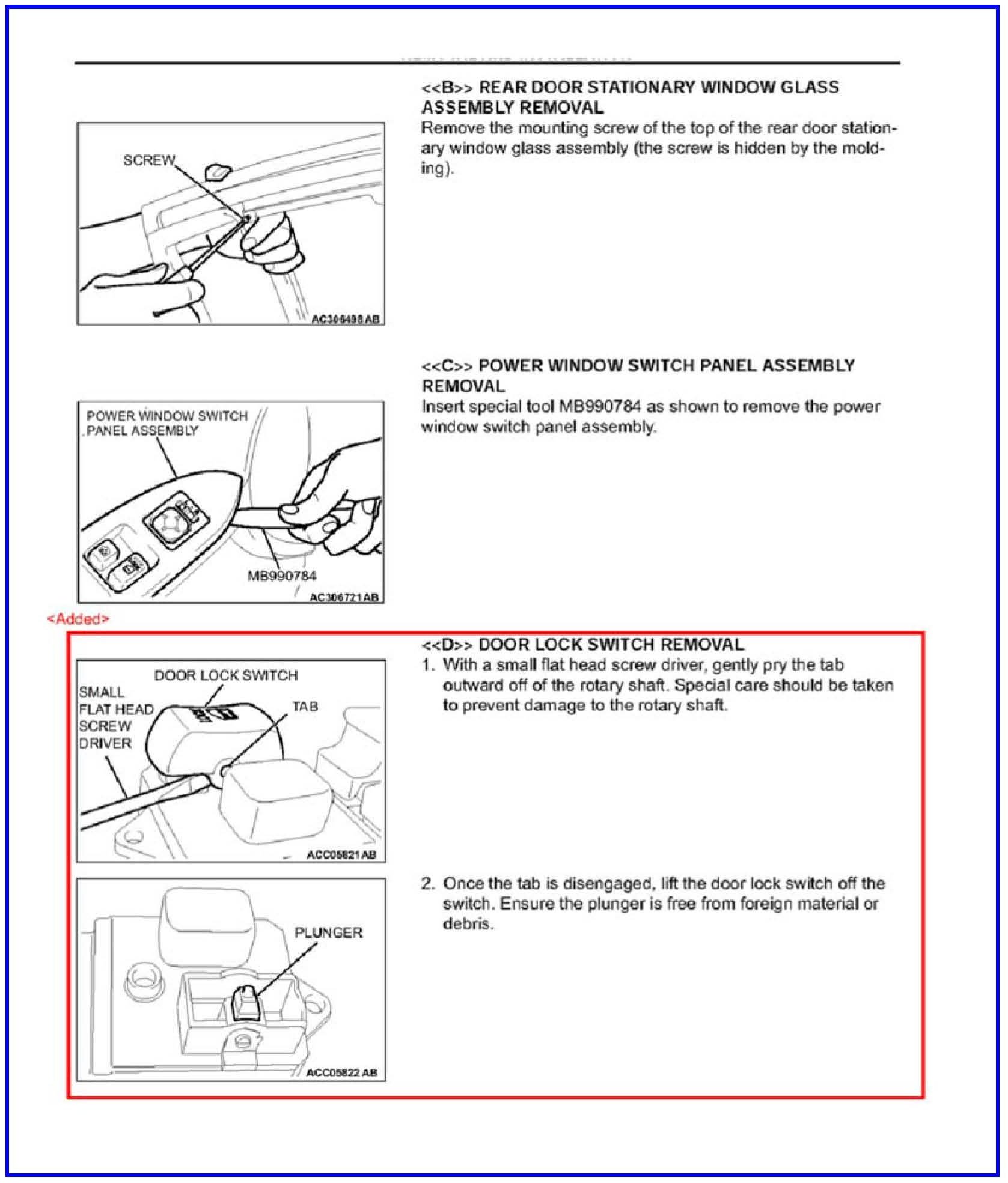 DOOR LOCK ROCKER SWITCH BUTTON REPLACEMENT - SERVICE MANUAL REVISION