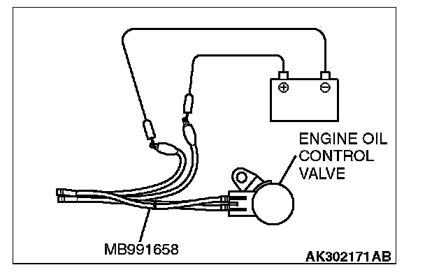 1. Disconnect the engine oil control valve connector and connect special tool MB991658 to the connector on the engine oil control valve side.