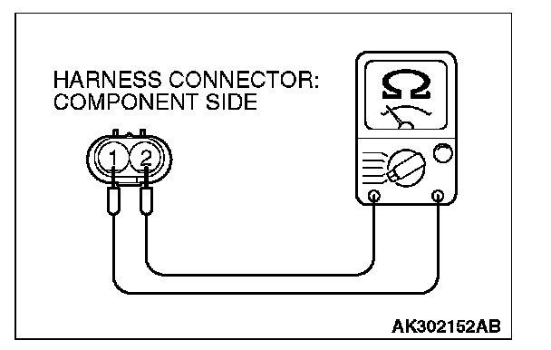 2. Measure resistance between terminal No. 1 and terminal No. 2 of the connector at the engine oil control valve side.