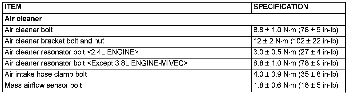 Air Cleaner - Fastener Tightening Specifications: