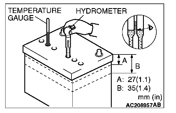 2. Use a hydrometer and temperature gauge to check the specific gravity of the electrolyte.