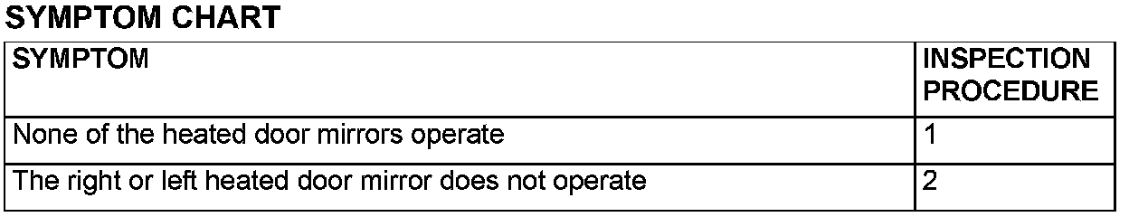 INSPECTION PROCEDURE 1: None of the Heated Door Mirrors Operate
