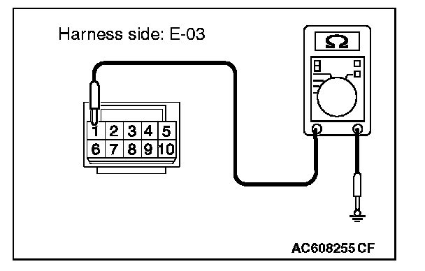 2. Measure the resistance value between terminal 1 and ground.