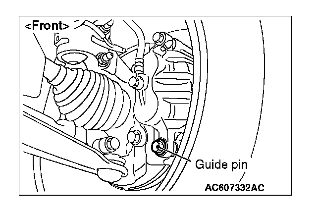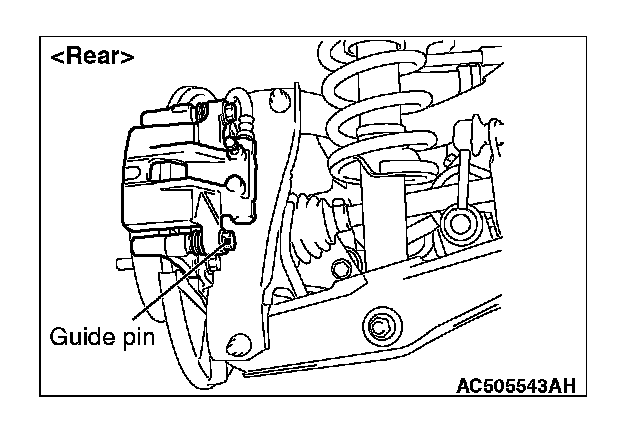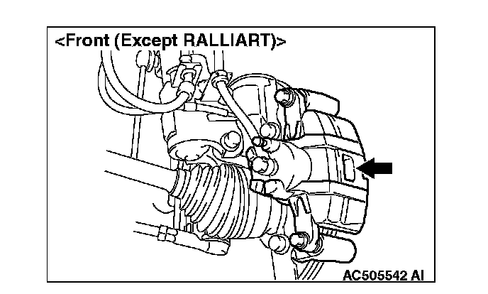 1. Visually check the thickness of brake pad from the inspection hole of the caliper body.