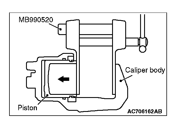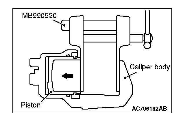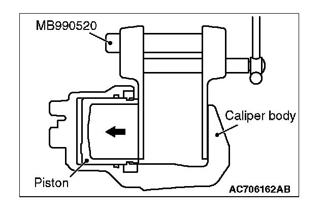 3. Clean the piston part, and press the piston into the cylinder using the special tool piston expander (MB990520).