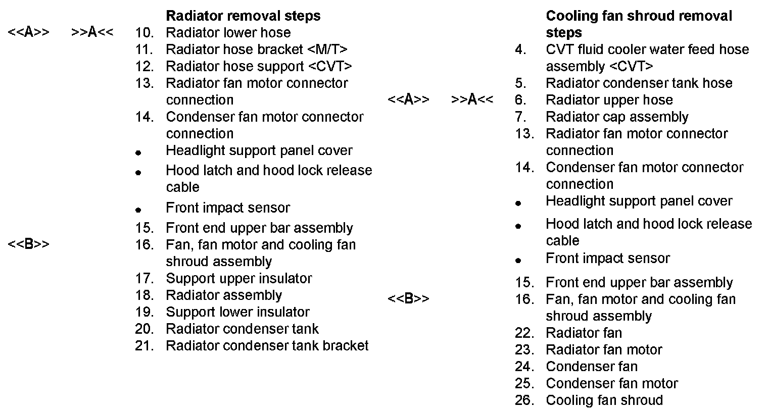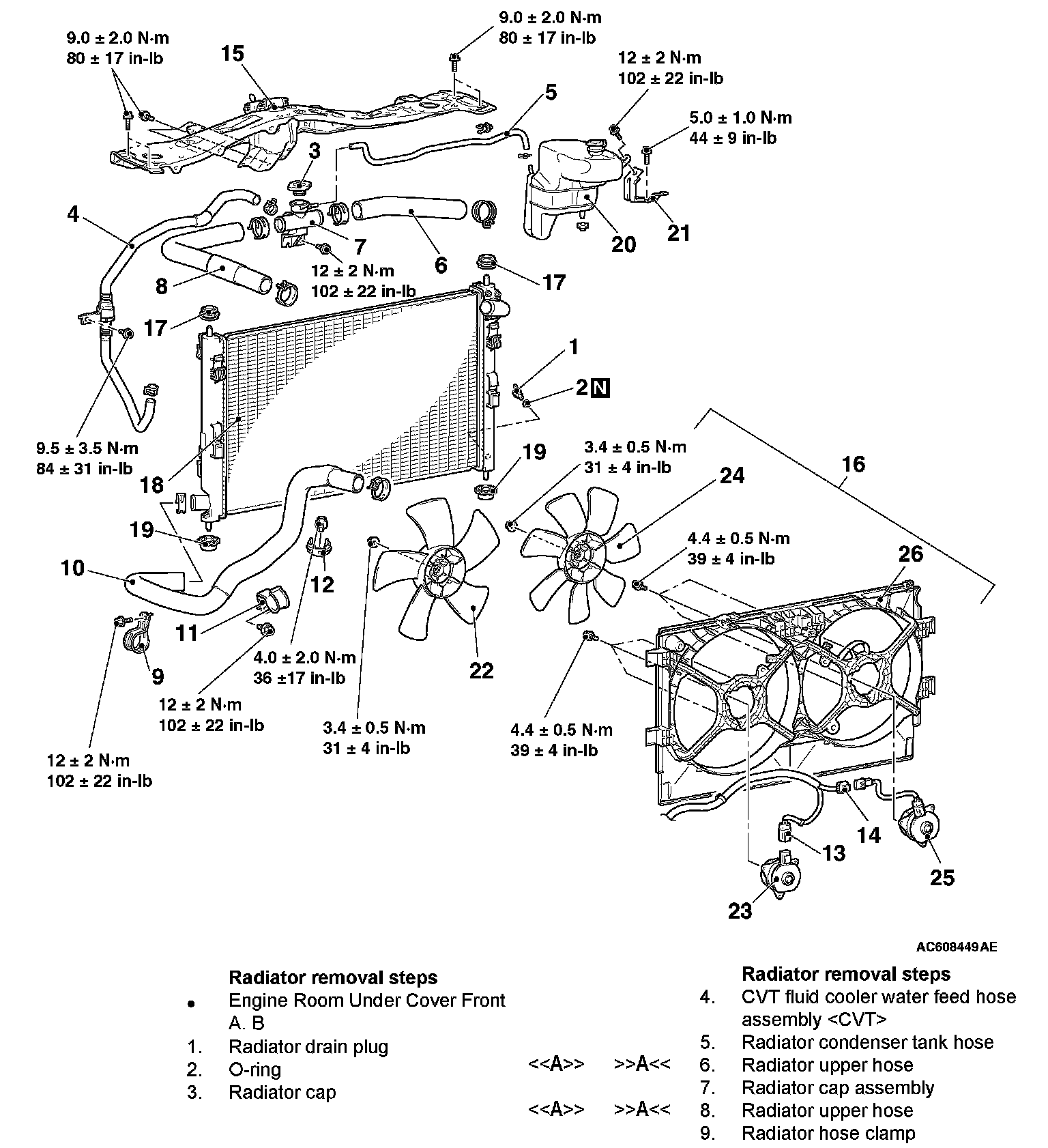 RADIATORREMOVAL AND INSTALLATION [2.0L ENGINE NON-TURBO, 2.4L ENGINE]