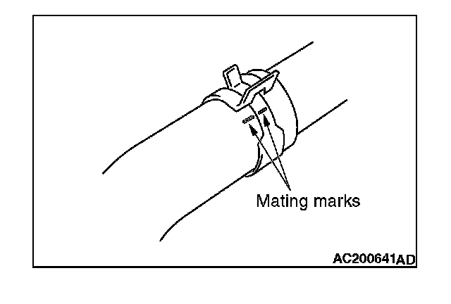 Make mating marks on the radiator hose and the hose clamp. Disconnect the radiator hose.
