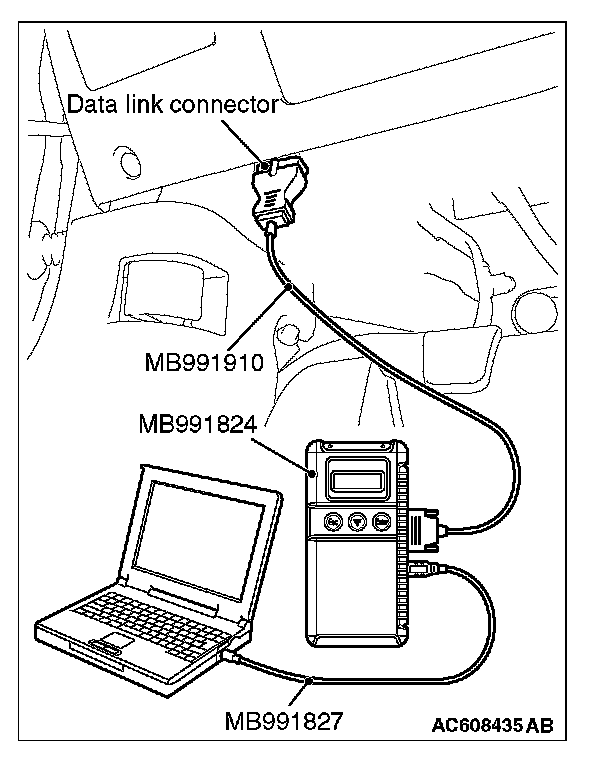 1. Connect the scan tool MB991958 to the data link connector.