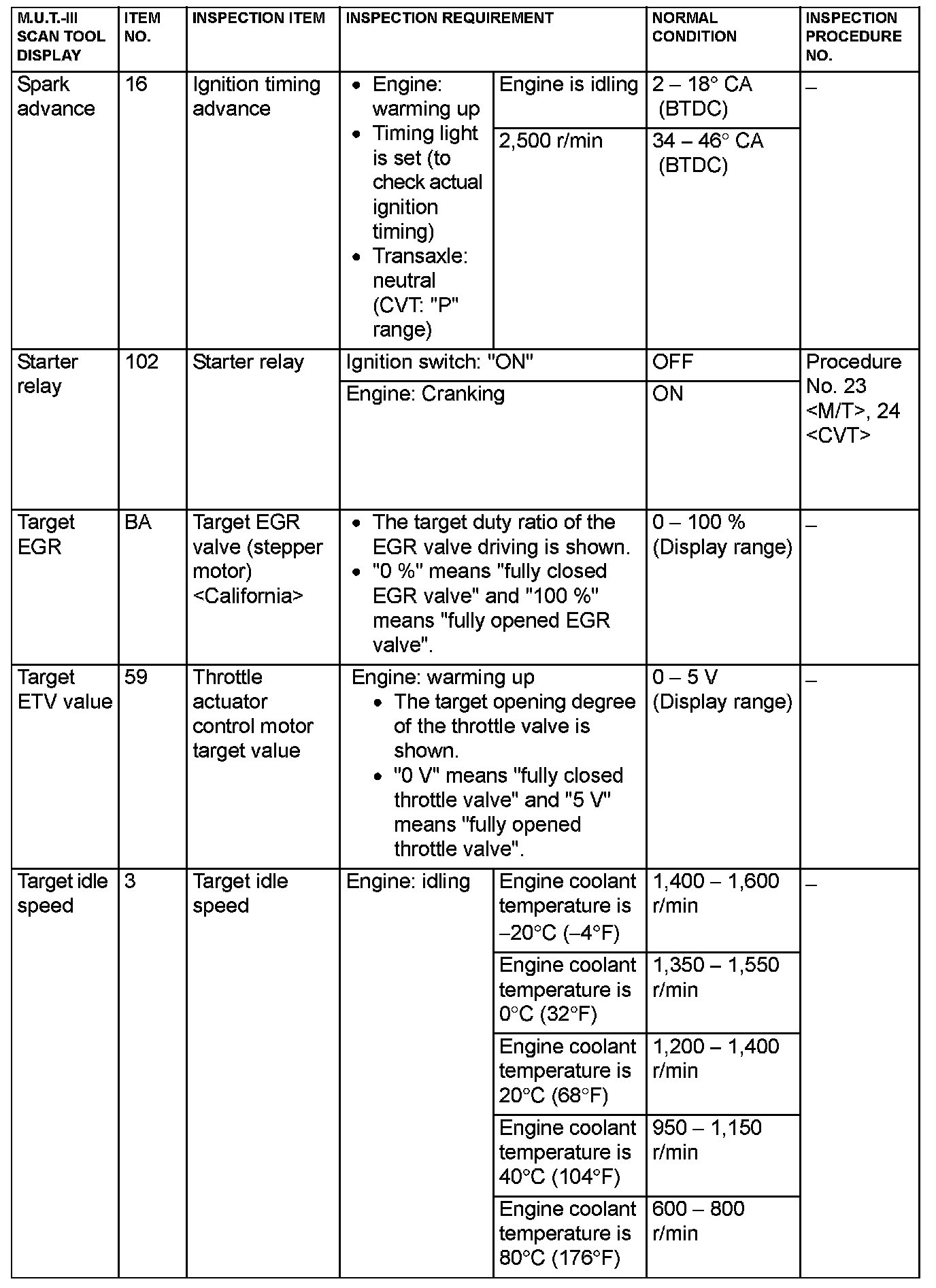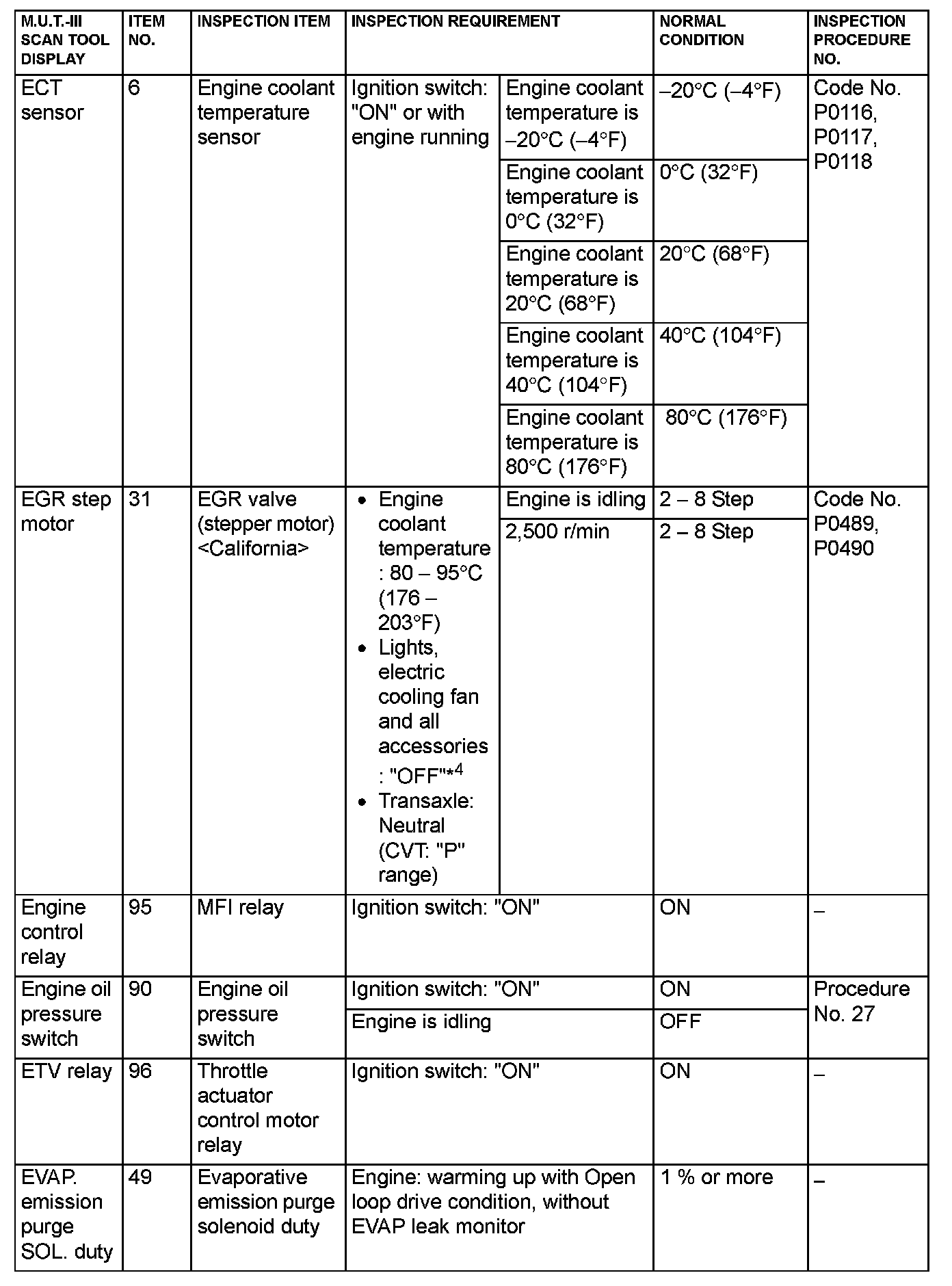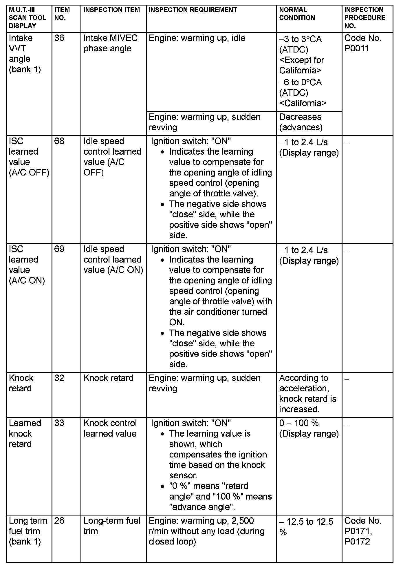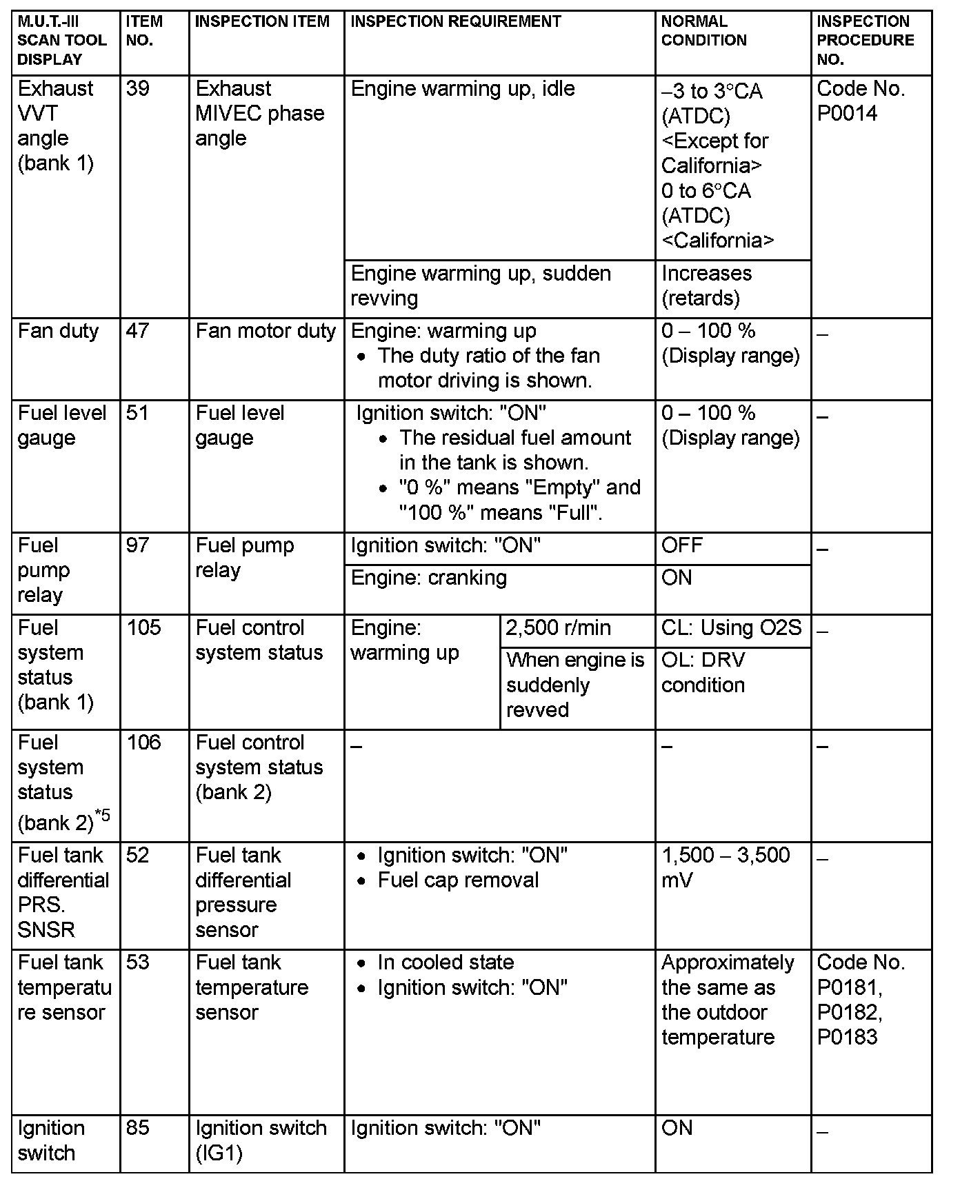 *5 : Data items are displayed on M.U.T.-III display, but the in-line 4 engine is not applicable and its data is displayed as "N/A".