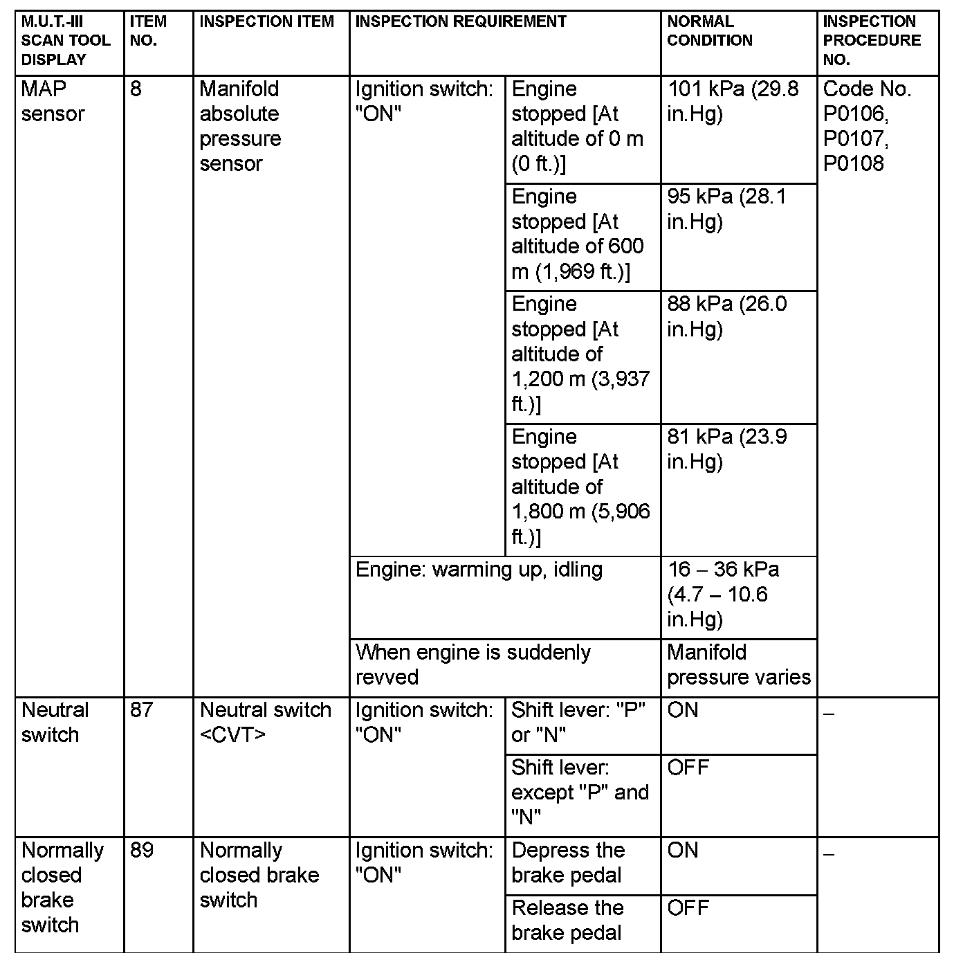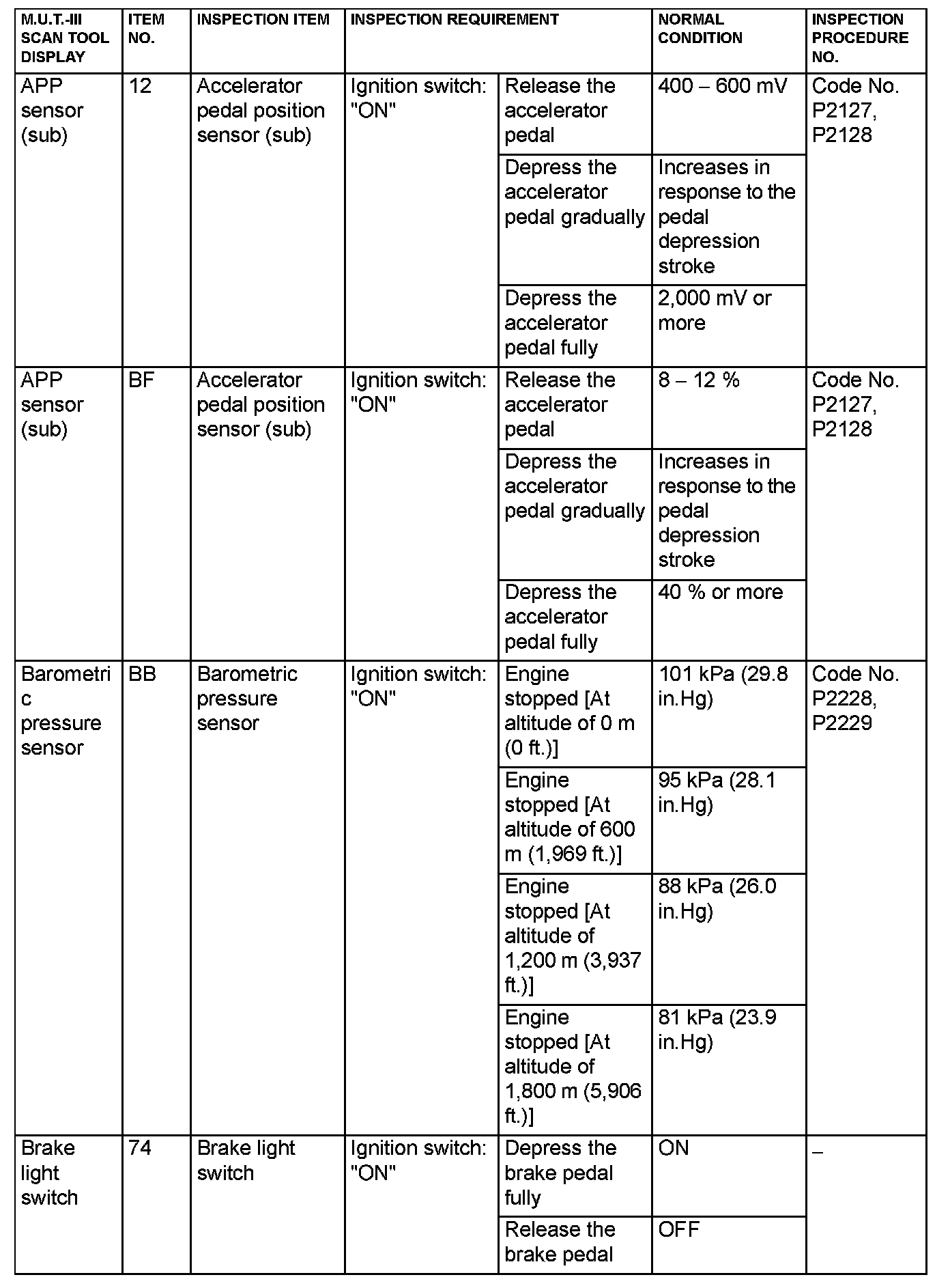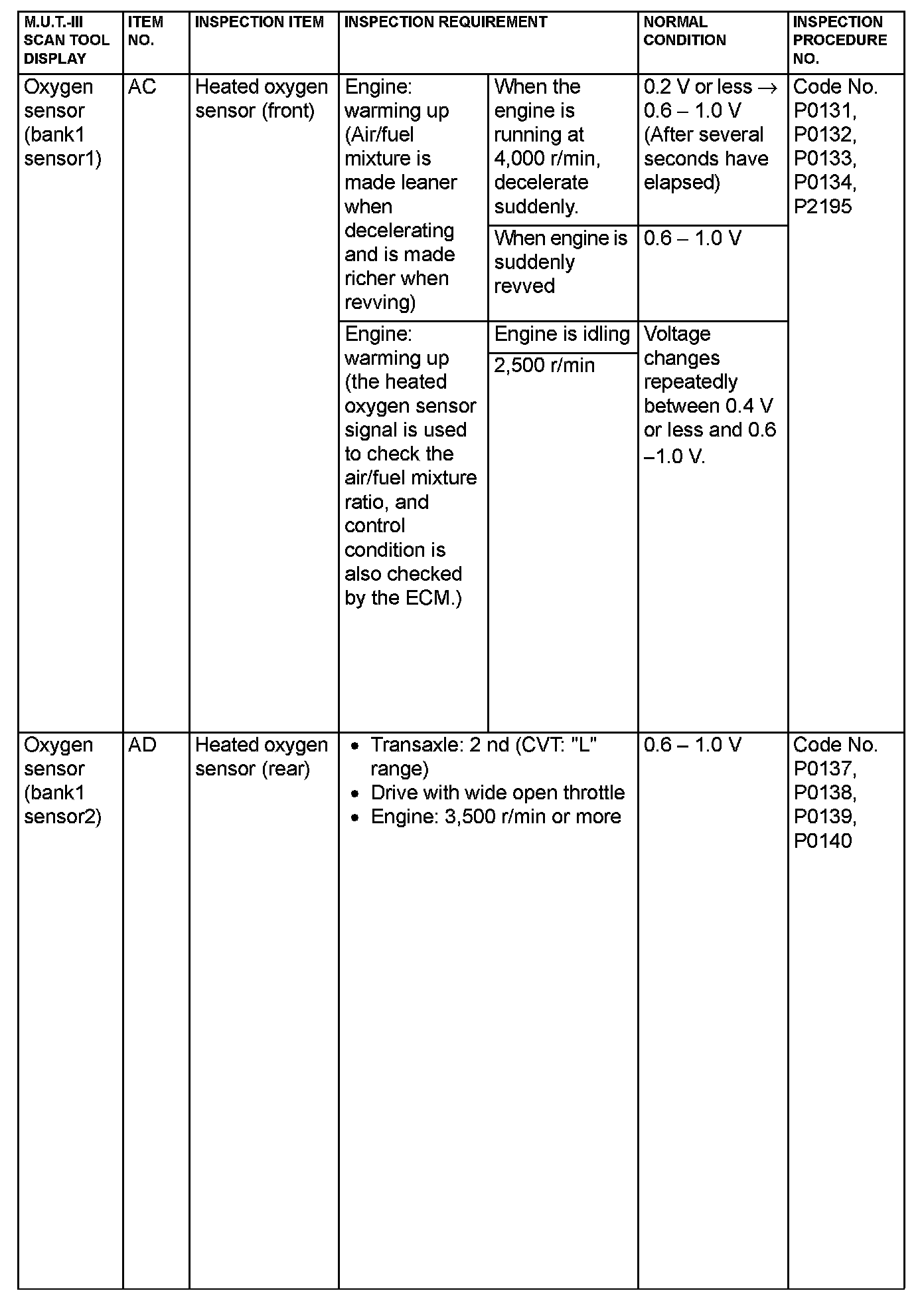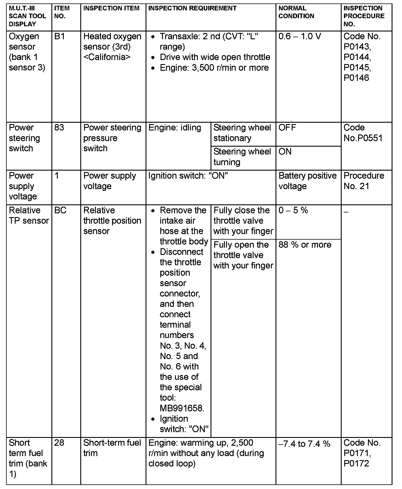 *5 : Data items are displayed on M.U.T.-III display, but the in-line 4 engine is not applicable and its data is displayed as "N/A".